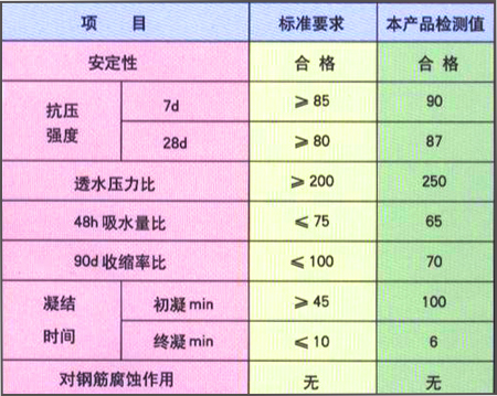 主要技术指标(依据JC474-1999标准,所检项目符合指标要求