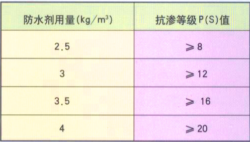 高效砼防水剂用量参考表 注:根据混凝土的抗渗等级和混凝土的标号,或实验室提供的参考用量。